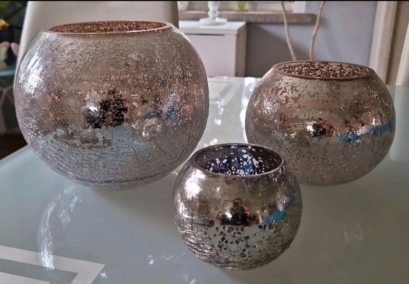 Biete: Windlicht Kugeln Teelicht Set 3 teilig rosa Silber