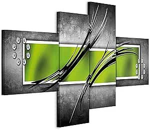 25 fest nur AbholungB&D XXL - Leinwand Bilder Abstrakt 200x92 cm Vlies Leinwandbild 4 Teilig Kunstdruck modern Wandbilder Groß XXL Wohnzimmer Wanddekoration Design Wand Bild Wandbild - grün grau