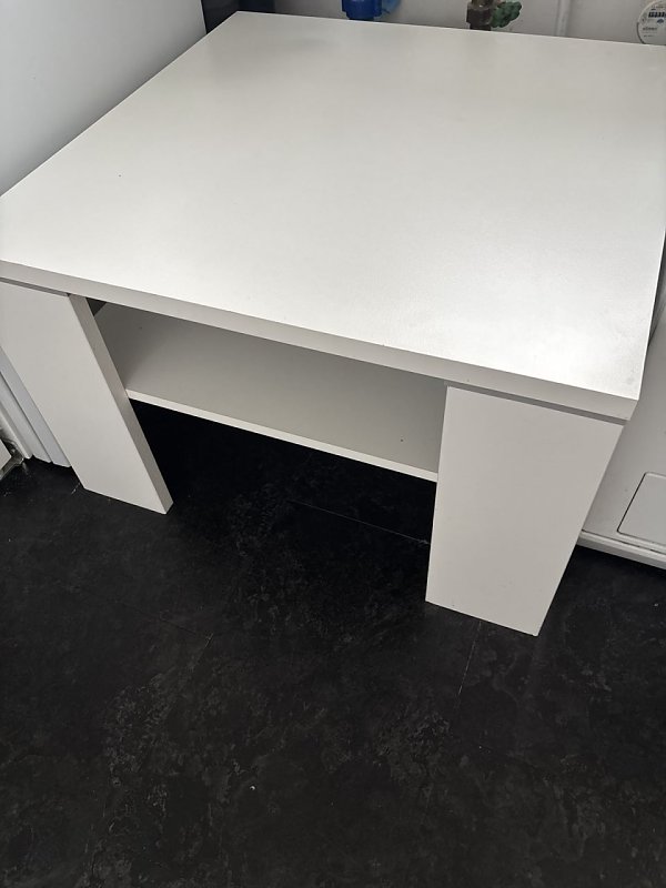 Biete weißen Tisch 0,67x0,67 und 0,42 hoch, mit Ablagefläche