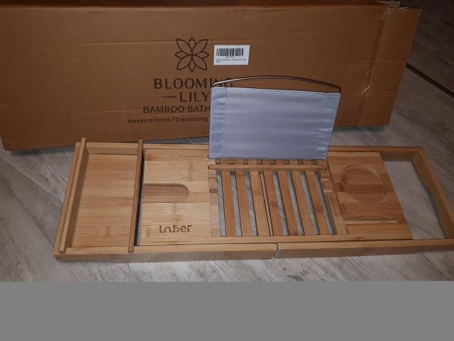 Badewannenablage (Foto: ) Verkaufe wegen Neuanschaffung eine nahezu Neue Relaxablage für die Badewanne - Caddy von Tuevob aus Naturbambus - einstellbar für div. Badewannenbreiten 70- 106 m, Breite 22 cm , Stärke 4 cm mit Tabletthalter , Abstellmöglichkeit für Gläser Gewicht 1,64 kg Privatverkauf , keine Gewährleistung , keine Rücknahme Artikelstandort Nordhausen