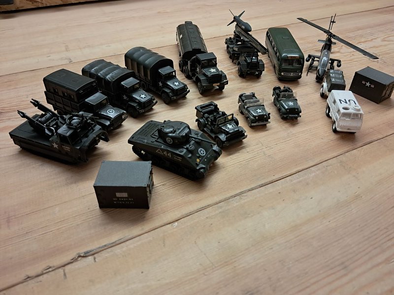 Biete Sammlung an Militärfahrzeugen (US, UN) von Roco, Wiking und Brekina (Hersteller vom Hubschrauber unbekannt) im Maßstab 1:87, passend für H0,