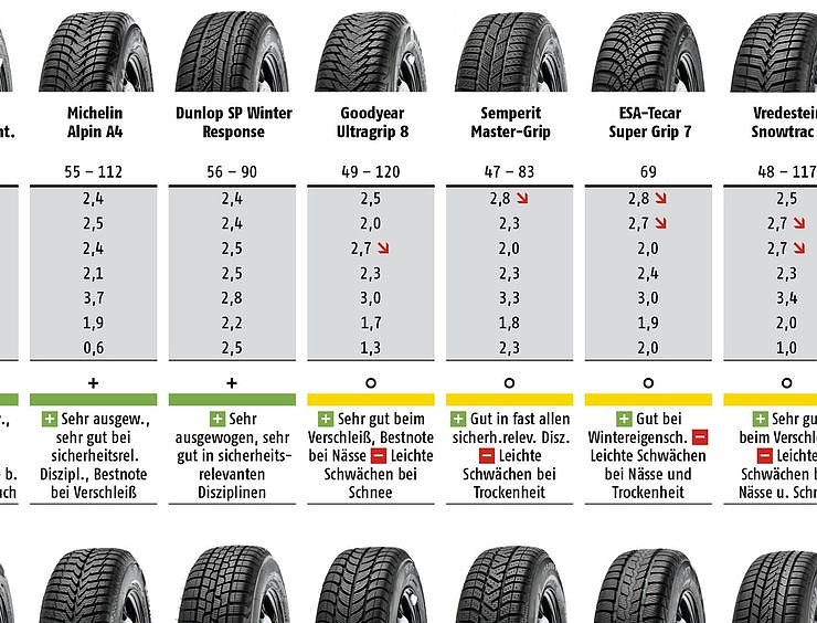 Bevor die Winterräder montiert werden, sollten die Pneus auf ihre Profiltiefe überprüft werden. Wenn das Profil weniger als 4 Millimeter beträgt, ist das Fahrzeug laut ADAC nur bedingt wintertauglich. Zwar schreibt der Gesetzgeber derzeit eine Mindestprofiltiefe von 1,6 Millimeter vor, eine optimale Wirkung ist damit bei winterlichen Verhältnissen aber keinesfalls gegeben. Symbole an der Flanke weisen den Winterpneu als solchen aus. Er muss mindestens die Buchstaben M+S (Matsch und Schnee) tragen, besser ist die Kennzeichnung mit der stilisierten Bergkette samt Schneeflocke.