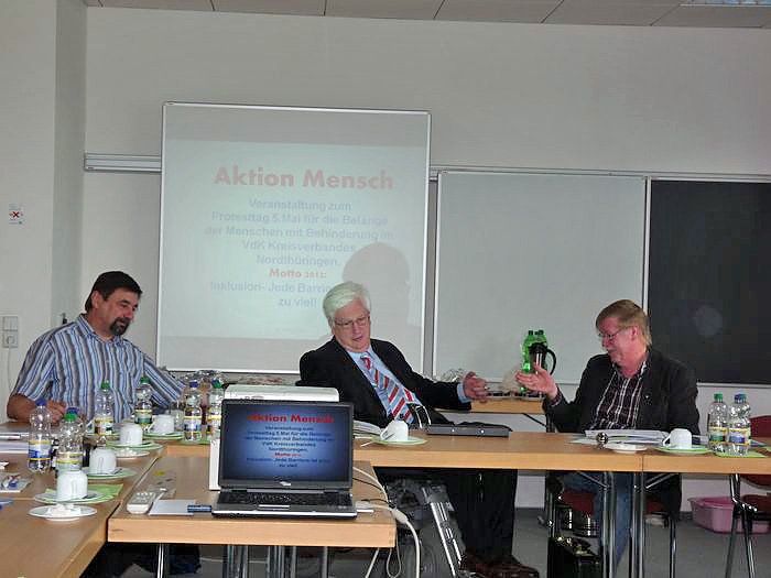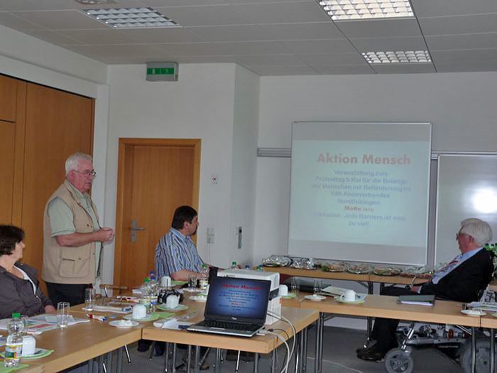 Zu dem Thema waren die Beauftragten für Menschen mit Behinderungen der Landkreise Nordhausen und des Kyffhäuserkreise, die Vertreter der Landratsämter, die kommunalen Beauftragten sowie Vertreter der betroffenen Verbände eingeladen. Der VdK wollte gemeinsam, mit den Vertretern, die sich mit dem Thema Inklusion - Umsetzung der UN Konvention beschäftigen, die Aktion Mensch nutzen, um weitere Erfahrungen auszutauschen.