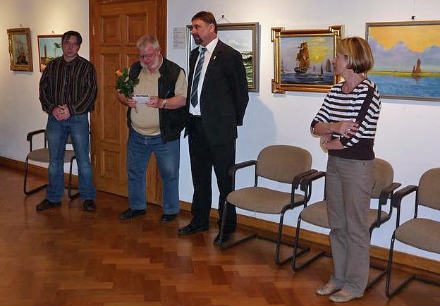 Marcel Arndt, Jochen Schirmer, Sondershausens Bürgermeister Joachim Kreyer und die Direktorin des Schlossmuseums Sondershausen Christa Hirschler bei der Eröffnung der Ausstellung.