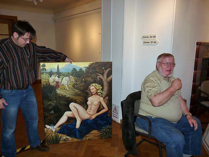 Autor: khhJochen Schirmer und Marcel Arndt, zwei in Nordhausen geborene Maler die jetzt in Heringen / Helme leben, eröffneten die Ausstellung ihrer Werke unter dem Thema Fliegender Wechsel - Der Lehre und sein Schüler.