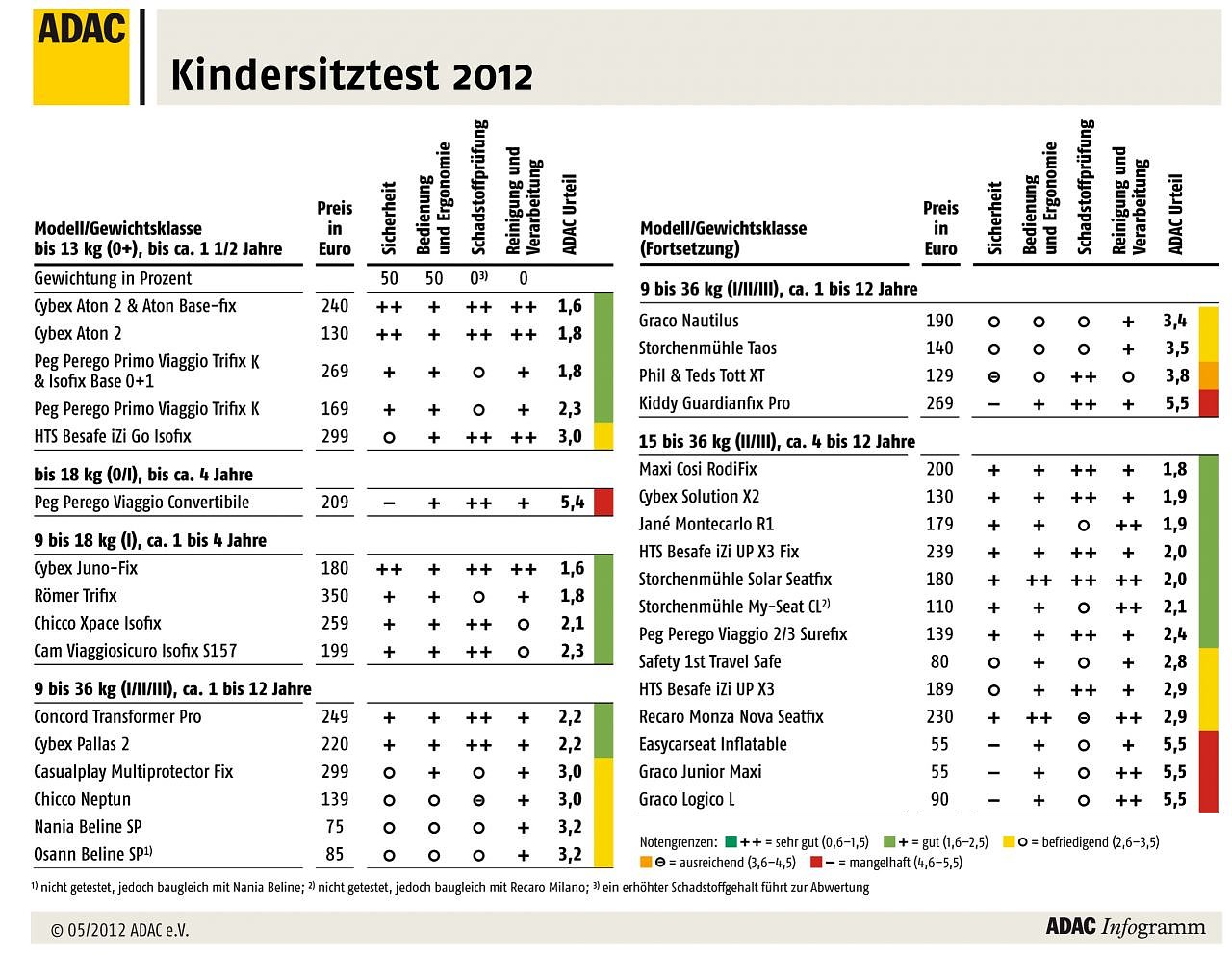 Dieses Teilergebnis schlägt beim ADAC dann auch auf das Gesamturteil durch. Graco Logico L, Graco Junior Maxi, Easycarseat Inflatable, Kiddy Guardianfix Pro sowie Peg Perego Viaggio Convertibile sind mit mangelhaft durchgefallen.