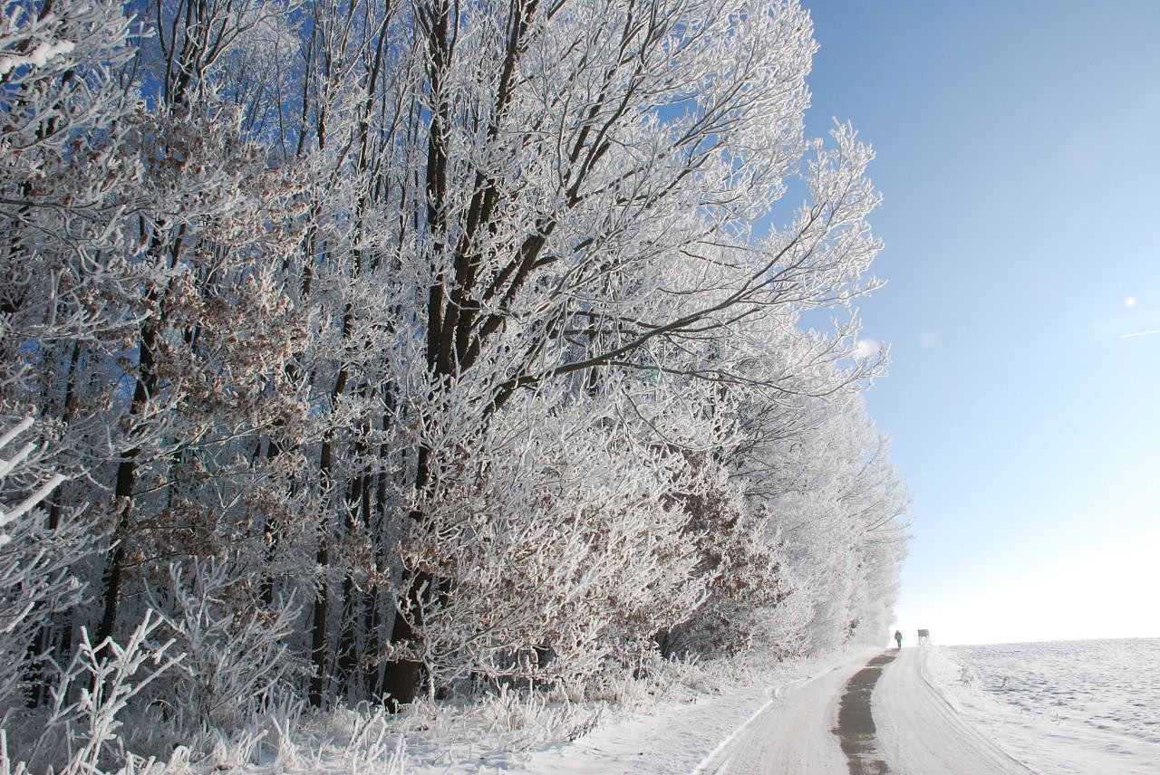 Entlang der Bundesstraße 86 präsentierte sich heute Mittag die Landschaft in schönstem Weiß unter blauem Himmel. (Foto: Jochen Miche)