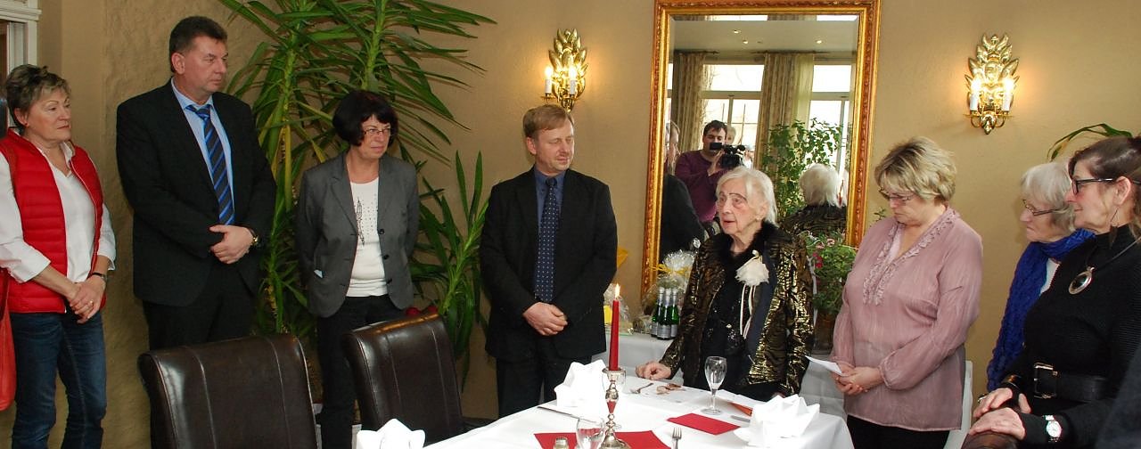 Im Wintergarten des Eisleber Hotels "Graf von Mansfeld" stieß Gisela Weser heute mit ihren Gästen auf ihren 95. Geburtstag an. (Foto: Jochen Miche)