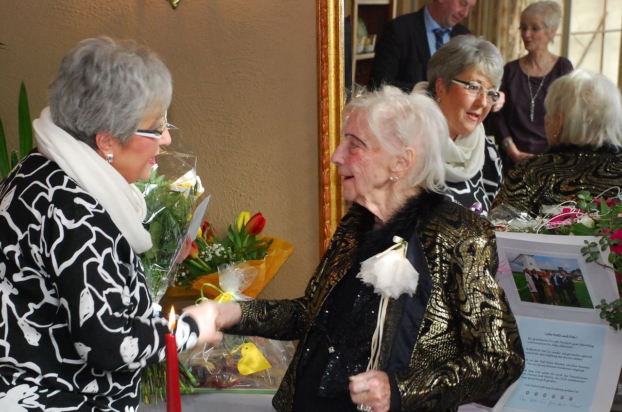 Miniaturschnitzer Lothar Lauterbach, der 1947 bei Frau Weser das Tanzen erlernt hatte, war ebenfalls unter den Gästen. Er überreichte Blumen, die ein bisschen klein geraten sind, aber dafür kein Wasser brauchen, wie er schmunzelnd erklärte. Daraufhin überreichte er einen bezaubernden, in einer Nussschale steckenden geschnitzten Miniaturblumenstrauß.