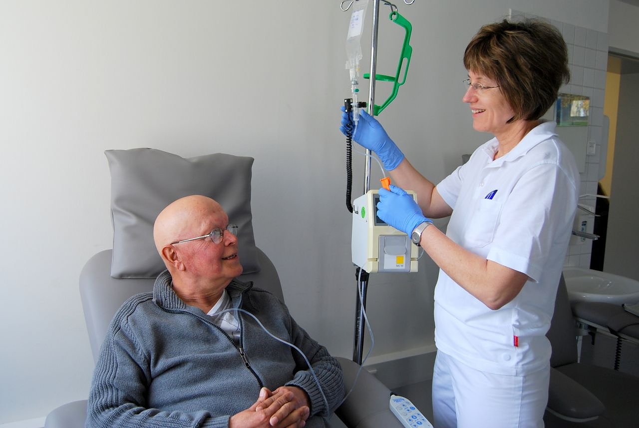 Auch wenn die Behandlung zum Teil drei Mal in der Woche durchgeführt wird und sich das regelmäßig wiederholt, ist man anschließend wieder in seiner gewohnten Umgebung. Das bringt Lebensqualität. Nach der Therapie geht es meist relativ gut. Für die Problemtage haben wir gute Hinweise, spezielle Medikamente, und wir können auch jederzeit anrufen, so eine Patientin.