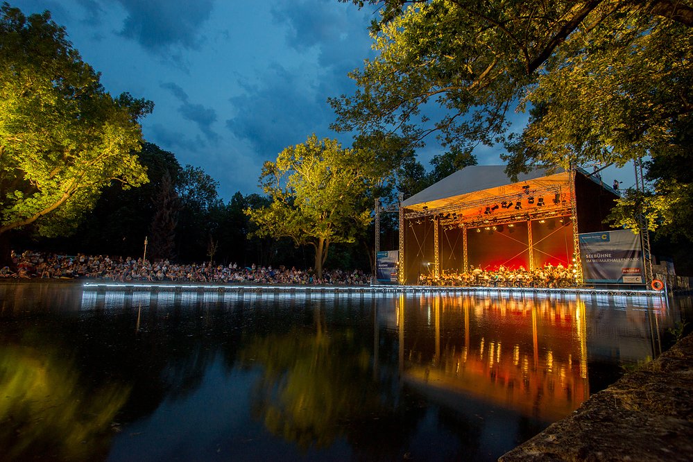 Sieben auf einen Streich: Im Weimarer Sommer sind die Open-Air-Nächte auf der Seebühne angekündigt. Broadway im Park heißt es am 2. Juli mit der Staatskapelle Weimar und Moderatorin Gayle Tufts. Die NDR Bigband, der Pianist Sebastian Knauer und der Sänger Jeff Cascaro treten am Sonntag, 17. Juli an gleicher Stelle auf. Popkonzerte und die Aquanario-Show vom 5. bis 7. August sind an gleicher Stelle zu erleben. Mit dem Video-Fassaden-Festival verzaubert Genius Loci Weimar vom 7. bis 9. August den Park an der Ilm. Das Kunstfest Weimar widmet sich vom 19. August bis 4. September zeitgenössischer Kunst – Theater, Musik und Tanz stehen auf dem Programm.
