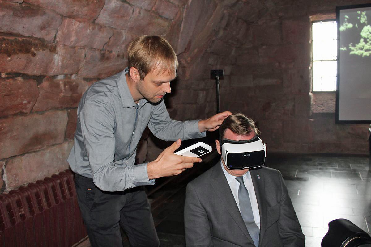 Er durfte dann schon mal vorab mit einer 3D-Brille Eindrücke sammeln. Das Konzept wird von der Firma MONUMEDIA Erfurt erarbeitet und soll die bisherige Dauerausstellung ablösen. So wird man einen virtuellen Lift benutzen können, um den Burgbrunnen zu erkunden und in Räume zu kommen, die nicht immer geöffnet sein können.