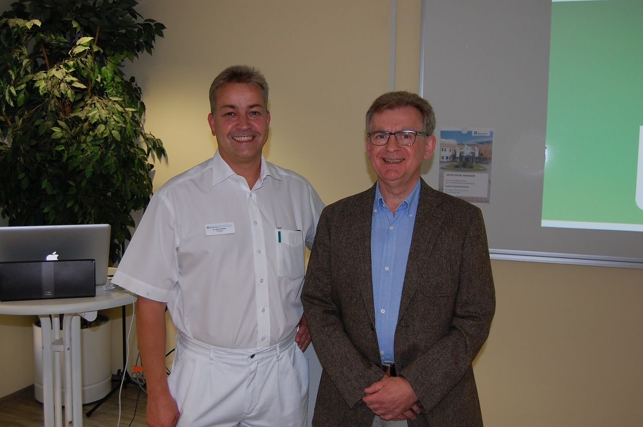 Prof. Dr. med. Jochen Strauß, Chefarzt der Klinik für Anästhesie, perioperative Medizin und Schmerztherapie des HELIOS Klinikums Berlin Buch, referierte zu diesem spannenden Thema umfassend. Prof. Dr. Strauß (rechts im Foto) ist ein ausgewiesener Experte auf dem Gebiet der Kinderanästhesie und konnte die Zuhörer mit seinem Vortrag begeistern.