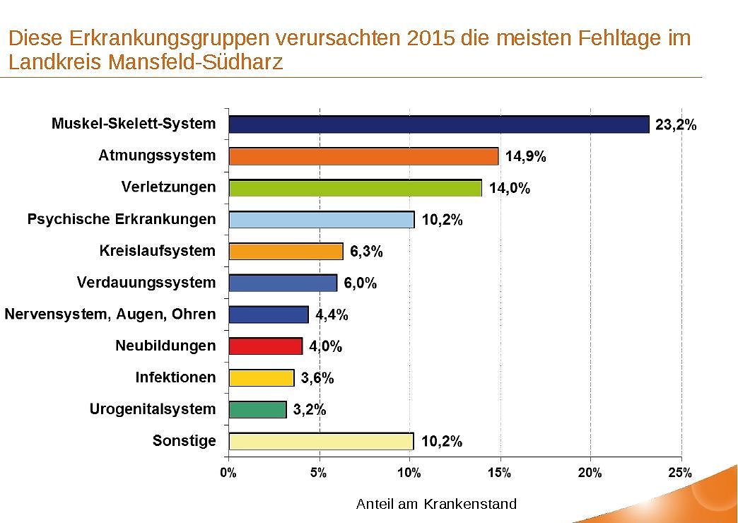 Im Landkreis Mansfeld-Südharz haben Männer 17 Prozent mehr Ausfalltage als Frauen. In ganz Sachsen-Anhalt liegen hingegen die Frauen bei Krebserkrankungen um 95 Prozent über dem der Männer, was normalerweise durch das vergleichsweise frühe Auftreten von Brustkrebs bedingt ist. Wir werden die Ergebnisse gemeinsam mit unseren Experten und Partnern auswerten und die Entwicklung des Krankenstandes in der Region langfristig beobachten., erklärt Hennemann.