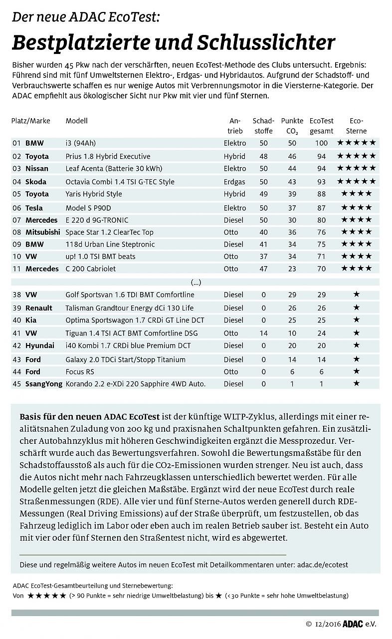Der neue ADAC EcoTest: Bestplazierte und Schlusslichter (Foto: ADAC) Der neue ADAC EcoTest: Bestplazierte und Schlusslichter (Foto: ADAC)