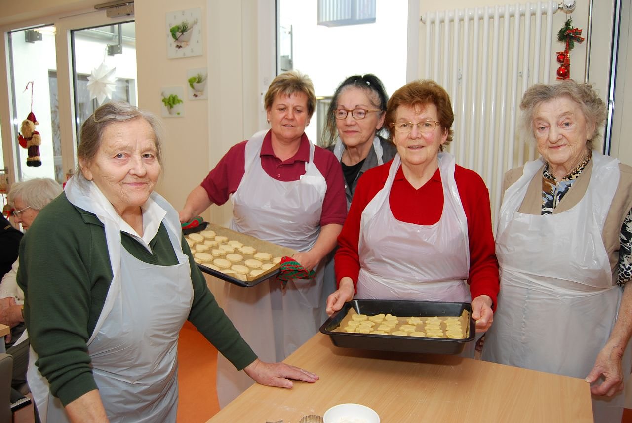 Schon von weitem duftet es in der Geriatrischen Tagesklinik nach frischen Weihnachtsplätzchen. Die Patienten sind gerade dabei, weitere Backbleche zu füllen.