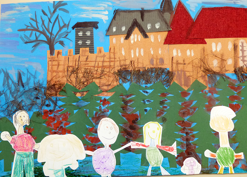 Wo bin ich? … da komm ich her hat die Blaue Gruppe – Kinder im Alter von 3 und 4 Jahren - ihr Projekt überschrieben. Es ist nicht im Kalender, weil eben kein Bild, sondern ein ganzes Buch eingereicht wurde. Die Gruppe hat ein überdimensionales Buch gestaltet, darin zoomen die Kinder von der Großen Erde, auf der wir alle Leben, Schritt für Schritt weiter herunter: auf Deutschland, auf Sachsen-Anhalt, auf Bernburg, auf ihre Kita, auf die Blaue Gruppe. Im Projektverlauf wurden Erklärungen für schwere Worte wie Sachsen-Anhalt gefunden und sogar ein eigenes Wappen haben sich die Kinder erarbeitet.