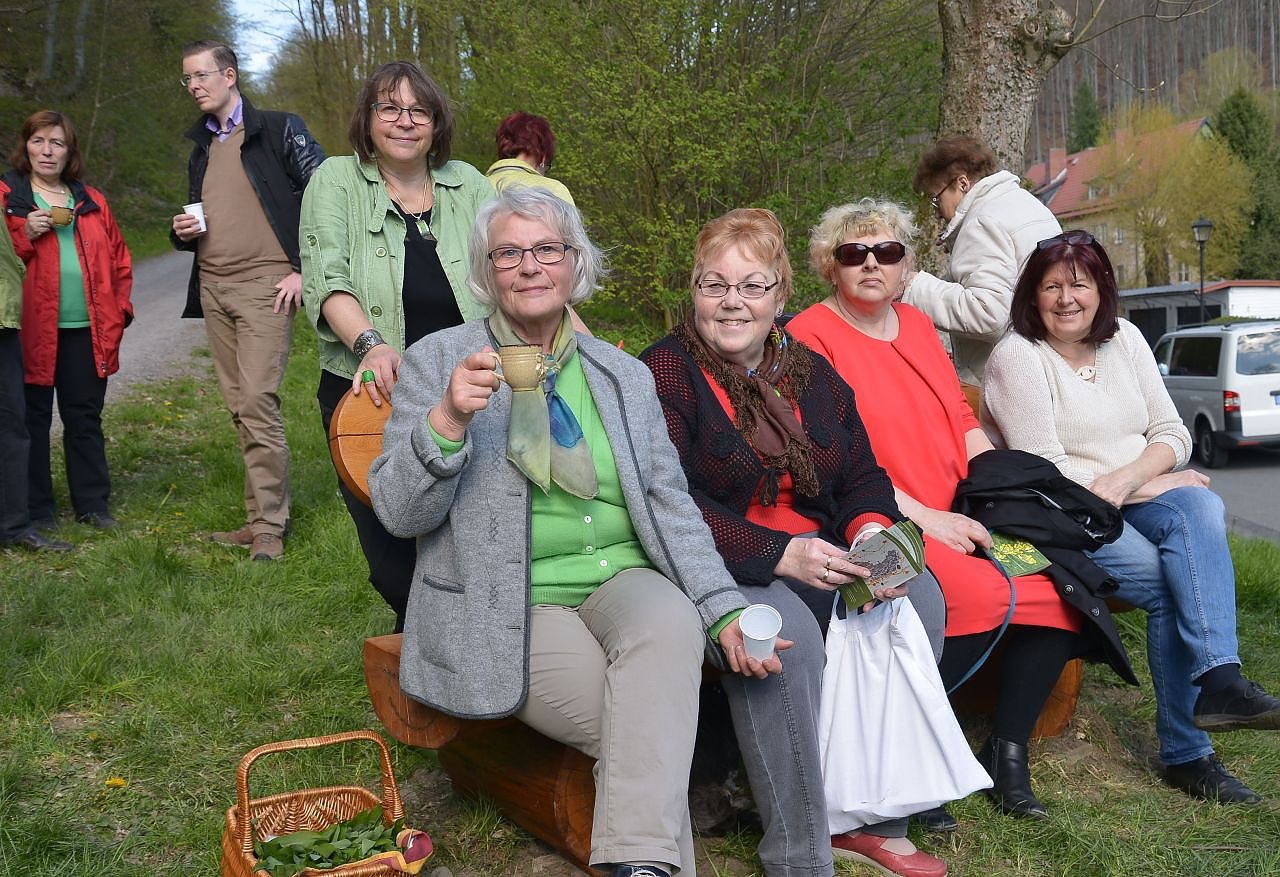 Gesponsert wurde diese Bank von der Stolbergerin Rosemarie Riese. Es war ein Geburtstagsgeschenk von meinen Kindern, teilte sie mit. Ich möchte, dass viele Wanderer und Besucher der Stadt Stolberg lange ihre Freude an dieser schönen Bank und dem Spruch haben. Zur Einweihung, traditionell mit Kräuterbutterschnitten und anderen leckeren Häppchen sowie einer guten Maibowle, ließen es sich zahlreiche Freunde, Bekannte und Durchzügler in Richtung Auerberg nicht nehmen, zu kosten und wenn die Bank einmal frei war, kurzzeitig darauf Platz zu nehmen.