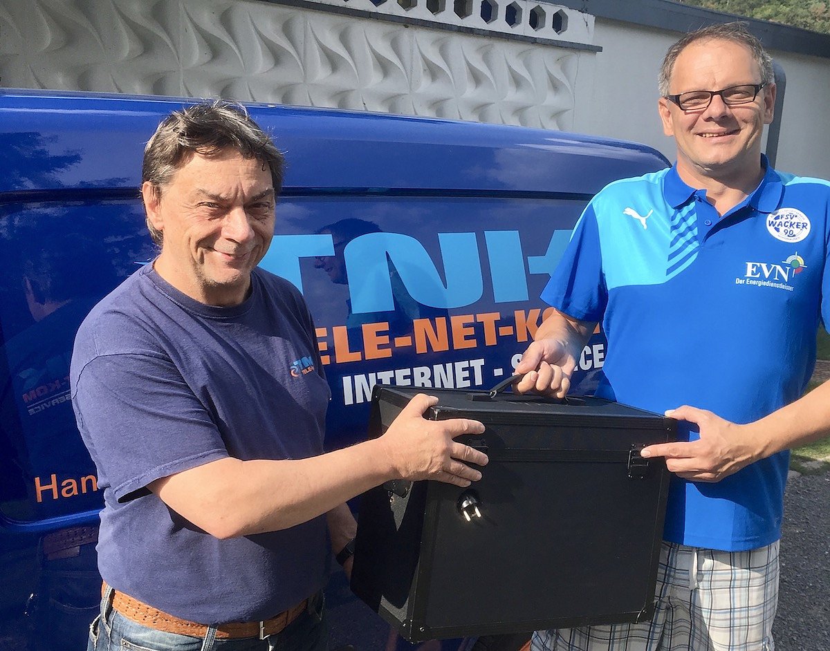 Von der Geschäftsstelle zog der Inhaber der Firma "Tele-Net-Kom" eine Richtfunkanlage zum Hauptplatz, wo jetzt sehr zur Freude des Wacker90Media-Teams ein starkes W-Lan-Signal anliegt, mit dem der Wacker90Funk in der kommenden Saison zuverlässig seine Spielübertragungen bewerkstelligen kann.