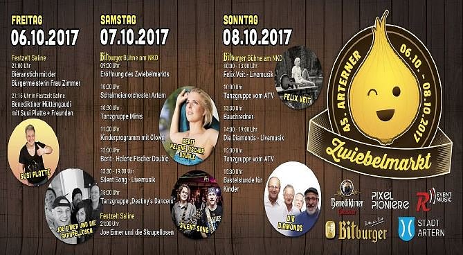 Vom 06.10. 08.10.2017 gibt es wieder einen Zwiebelmarkt in Artern und hier finden Sie das Programm zum Vormerken...