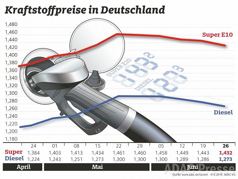 Nachdem Kraftstoff in Deutschland bereits seit Ende Mai günstiger wird, hat sich die Abwärtsentwicklung in der vergangenen Woche noch einmal beschleunigt. Gegenüber der Vorwoche sank der Preis für einen Liter Super E10 nach Angaben des ADAC um 1,1 Cent auf durchschnittlich 1,432 Euro...