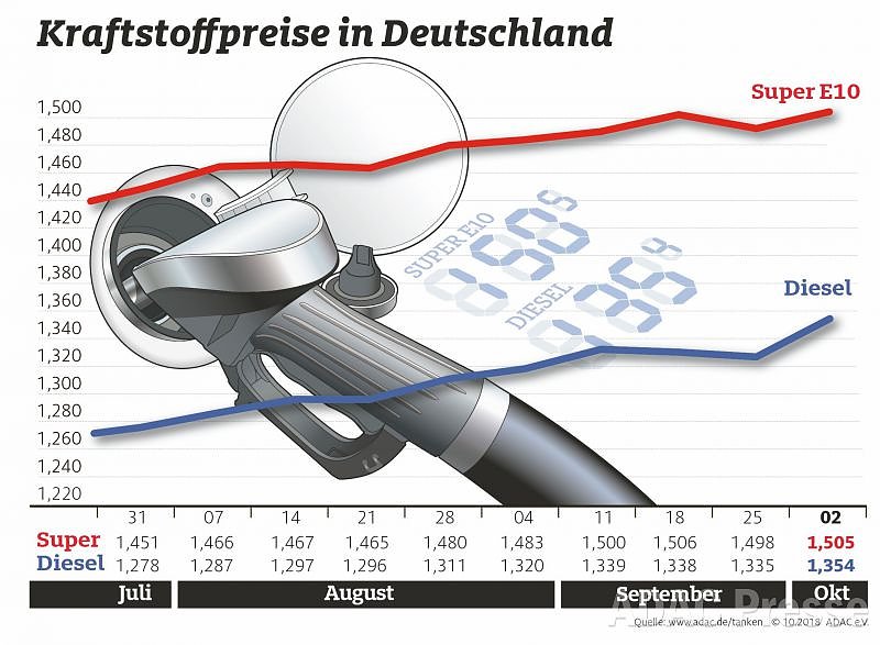 Die Lage an den Tankstellen bleibt angespannt: Super E10 verteuerte sich nach Angaben des ADAC im Vergleich zur Vorwoche um 0,7 Cent auf durchschnittlich 1,505 Euro pro Liter. Diesel hat eine neue Jahreshöchstmarke erreicht...
