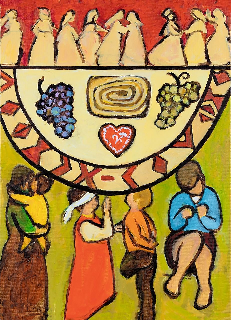 Es ist noch Platz – besonders für all jene Menschen, die sonst ausgegrenzt werden wie Arme, Geflüchtete, Kranke und Obdachlose. Die Künstlerin Rezka Arnuš hat dieses Anliegen in ihrem Titelbild symbolträchtig umgesetzt. In über 120 Ländern der Erde rufen ökumenische Frauengruppen damit zum Mitmachen beim Weltgebetstag auf.