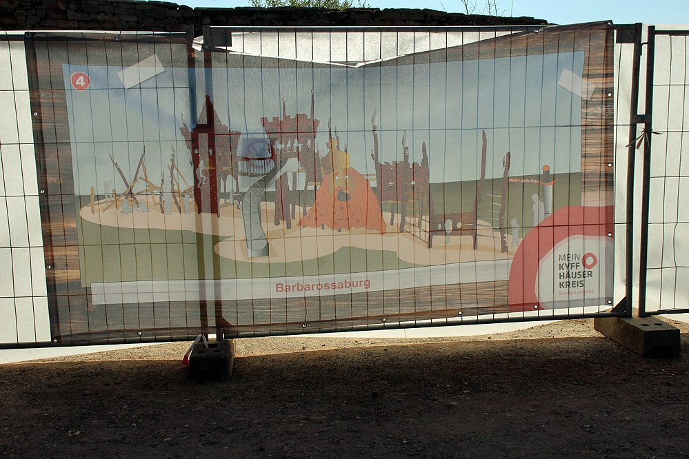 Bei laufendem Betrieb am Kyffhäuserdenkmal werden die Bauarbeiten durchgeführt. Die Bausstelle wird mit einem schicken Zaun gesichert, der schon vieles verrät.