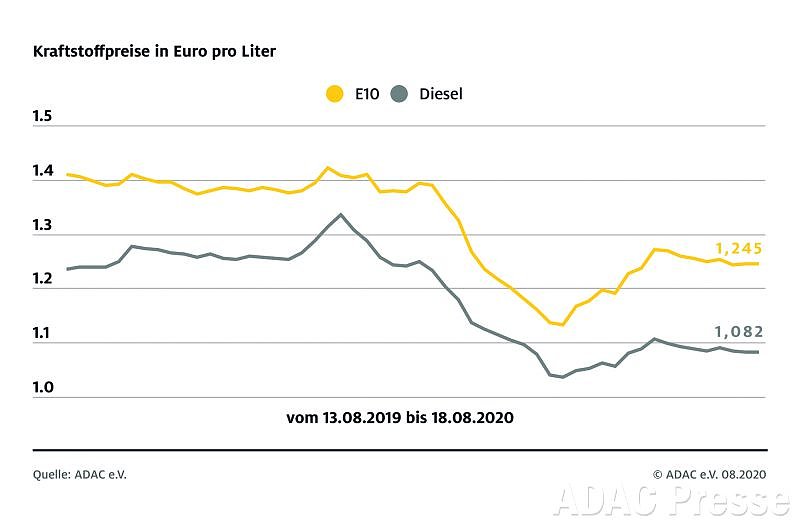 Bei den Spritpreisen sind in dieser Woche kaum Veränderungen im Vergleich zur Vorwoche zu verzeichnen. So bleibt der Preis für einen Liter Super E10 im Bundesschnitt wie in der vergangenen Woche bei 1,245 Euro. Ein Liter Diesel kostet im bundesweiten Mittel 1,082 Euro und damit 0,1 Cent weniger als in der Vorwoche...
