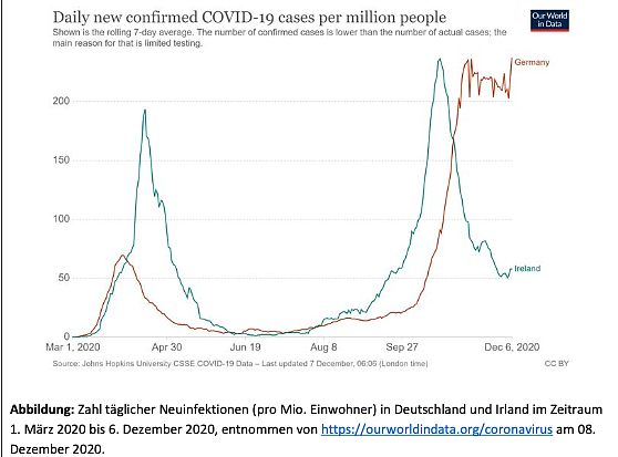 Die Erfahrungen aus vielen anderen Ländern (z.B. Irland) im Umgang mit der Pandemie zeigen: schnell eingesetzte, strenge Maßnahmen über einen kurzen Zeitraum tragen erheblich dazu bei, die Infektionszahlen deutlich zu senken.