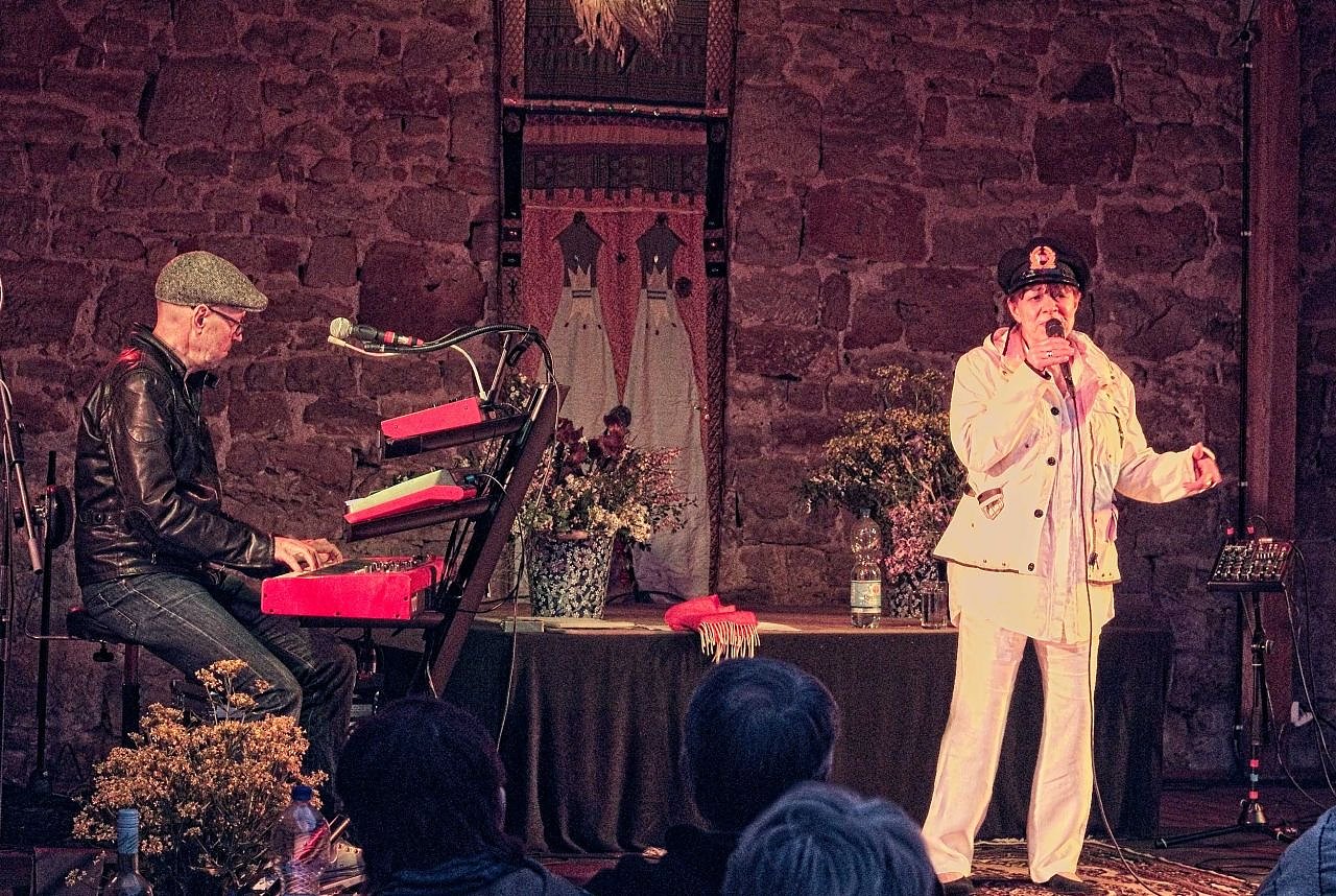 Ulla Meinicke steht auf dem Programm. Es erwartet uns zeitlose Musik mit poetischer Sprache. Zuerst erinnert Ulla daran, dass dies ihr erstes Konzert, seit dem 21. März 2020 ab dem alles stillstand, ist. Seit diesem Tag trägt sie immer eine Kapitänsmütze. Nichts haut einen Seemann um, das wird auch gleich mit dem alten Lindenberg-Song unterstrichen. Was bleibt einem Seemann der nicht mehr fährt? Aber heute fährt der Seemann. Ulla haut einen ihrer Songs nach dem anderen raus, unterstützt von Reinmar Hensche auf dem e-Piano.