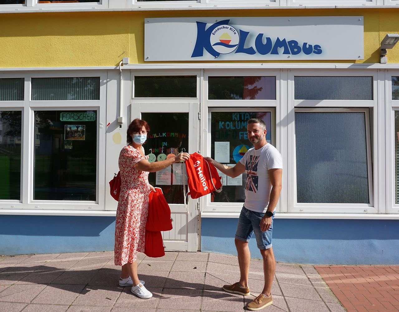 Übergabe der Malvorlagen an Clemens Kretschmer, stellvertretender Leiter der Entdecker-KiTa Kolumbus in Hettstedt