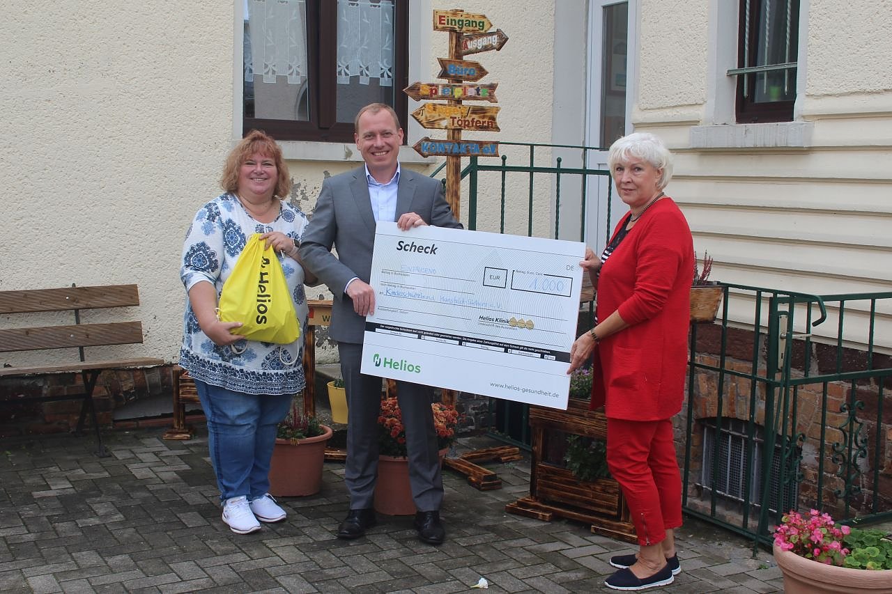 Die Beteiligung an der Laufaktion #heliosläuft in der Region Sachsen-Anhalt war überwältigend. Neben dem Spendenzweck auf Landesebene wollen wir zusätzlich das direkte Umfeld unterstützen und freuen uns, dem Deutschen Kinderschutzbund Kreisverband Mansfeld-Südharz e.V. mit einer Spende über 1.000 Euro unter die Arme zu greifen, sagte Klinikgeschäftsführer Mario Schulter bei der Scheckübergabe.