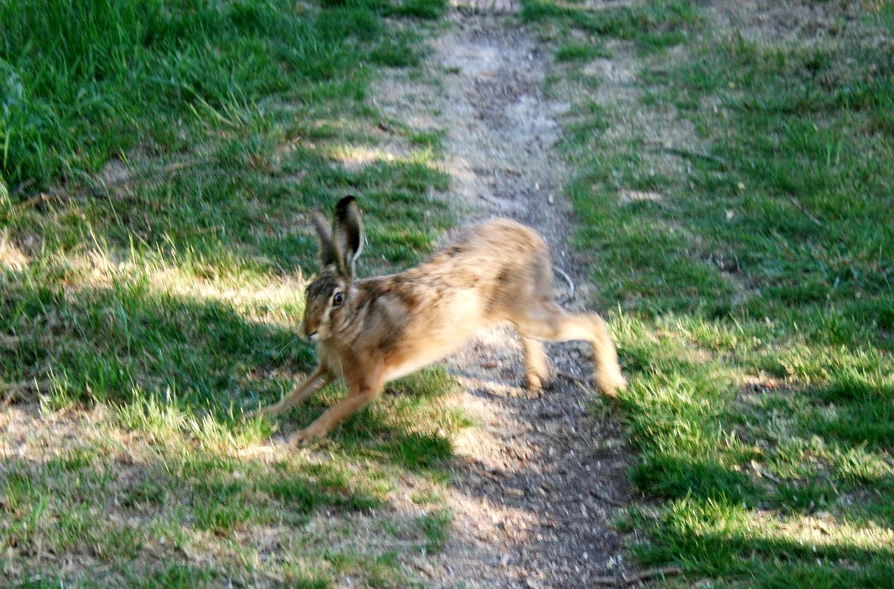 Diese Szene wiederholte sich ein paar mal. Es kam dann zu einem kurzen Blickkontakt zwischen den Tieren und der Hase floh an mir vorbei. Seltsam war das Verhalten von Meister Langohr schon. Offenbar handelte es sich um ein unerfahrenes Tier. Zum Glück kam es nicht zum Showdown. Es kam niemand zu Schaden.