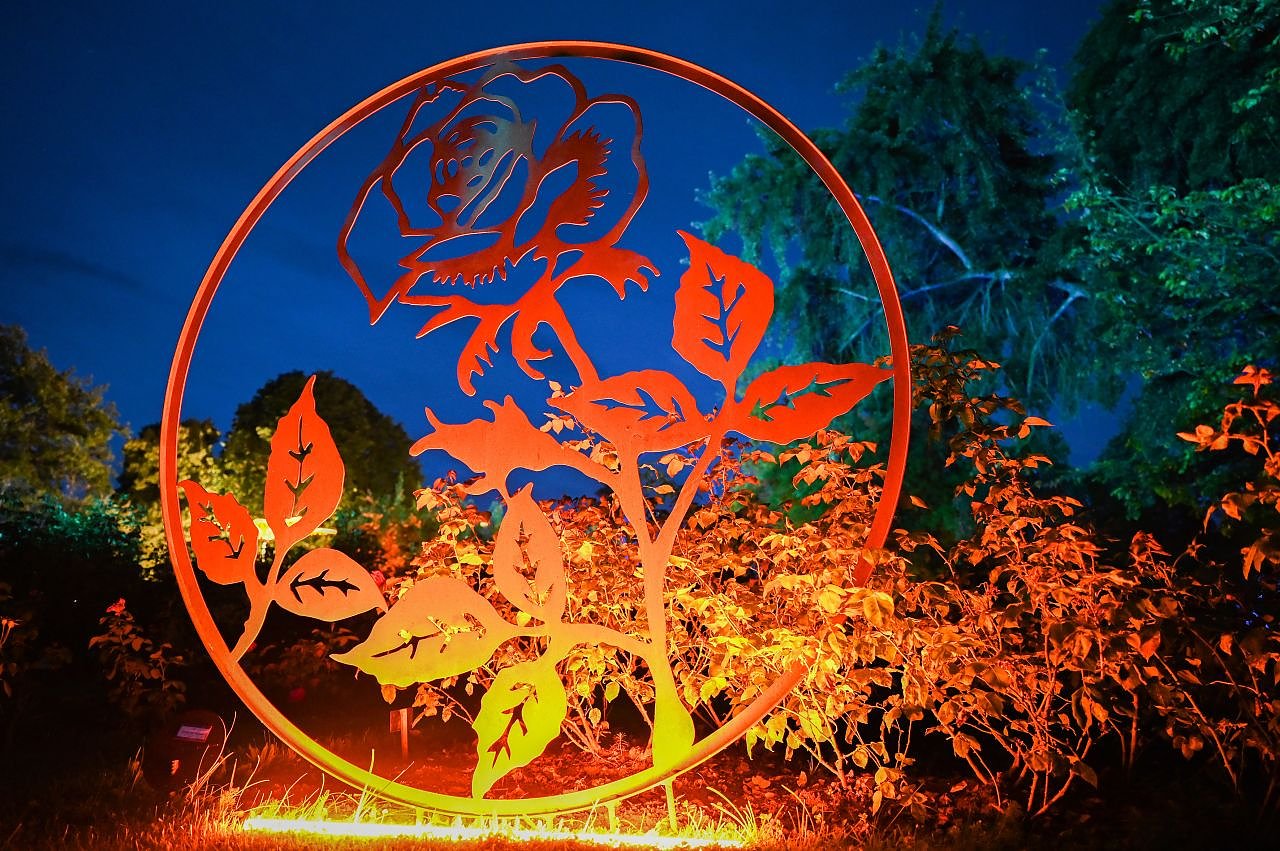 Lichterglanz im Rosenpark Rose trifft Kunst