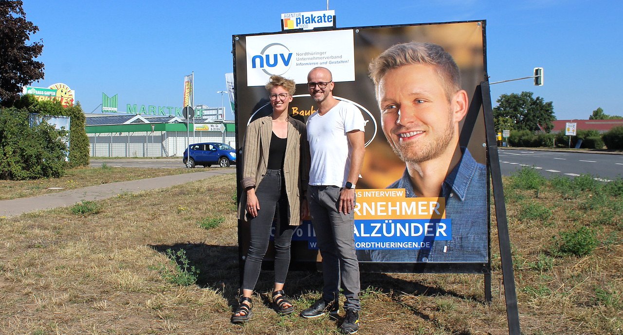 Gemodelt haben für die Kampagne vier Unternehmer aus der Region, die nun großflächig Gesicht zeigen und beispielhaft für ihre Branchen stehen. Auf der Homepage des NUV berichten sie ausführlich über ihre Motivation und Arbeitsweisen. Cornelia Pein, eine Steuerberaterin aus Bleicherode vertritt die Unternehmerinnen Nordthüringens. Dr. Clemens Ritter von Kempski verkörpert als ausgebildeter Arzt den erfolgreichen Quereinsteiger, der in gehobener Gastronomie und Hotellerie agiert. Stephan Ostermann, Inhaber der Firma Granitbau Nordhausen ist nicht nur Unternehmer, sondern auch Übernehmer, denn er führt das Geschäft seines Vaters in Familientradition weiter. Detlef Kuhnert schließlich kommt aus der Baubranche und leitet sein Unternehmen mit Estrichbau in Sondershausen.