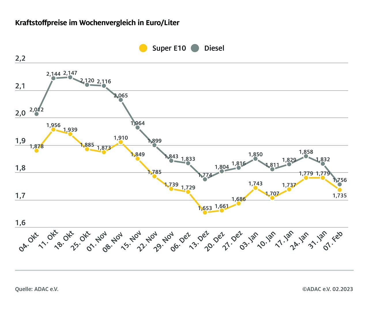 Autor: redEin Liter Super E10 kostet aktuell im Schnitt 1,735 Euro – ein Minus von 4,4 Cent. Mit diesem Rückgang gestaltet sich das Preisbild an den Tankstellen laut ADAC aus Verbrauchersicht – unterstützt von leicht rückläufigen Rohölnotierungen – etwas erfreulicher.