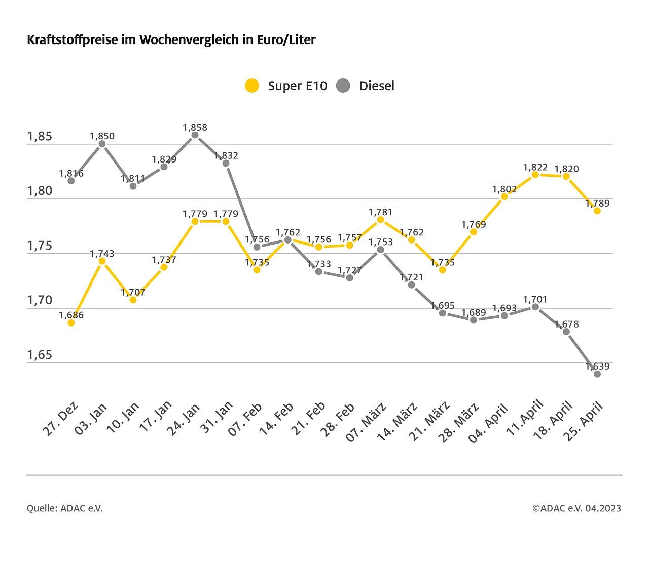 Die Kraftstoffpreise an den deutschen Tankstellen sind im Vergleich zur Vorwoche spürbar gesunken das zeigt die aktuelle ADAC Auswertung. Danach kostet ein Liter Super E10 im bundesweiten Mittel 1,789 Euro und damit 3,1 Cent weniger als vor einer Woche...