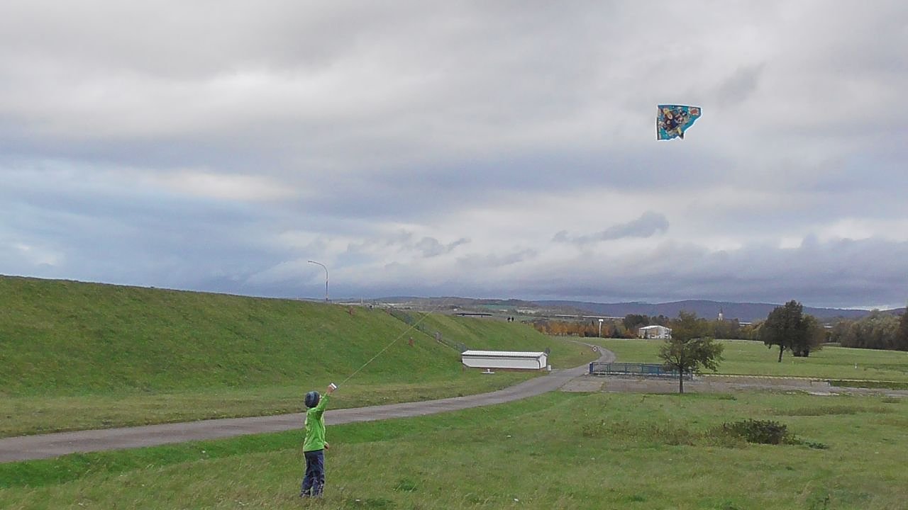 Für Enkel und Opa ist es ein besonderes Erlebnis, wenn sie einen Drachen steigen lassen können. So geschehen in der Nähe der Staumauer in Kelbra, am Wochenende.
