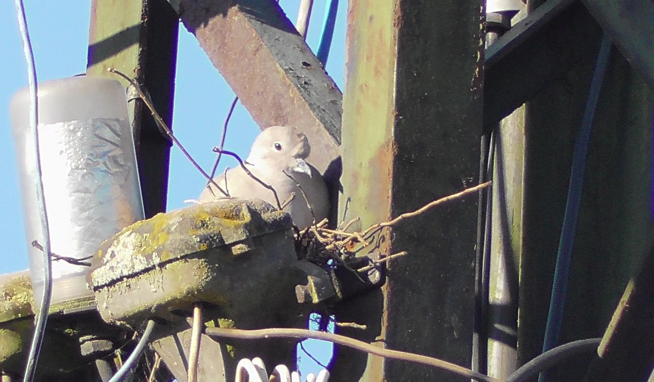 Auch dieses Jahr brüten wieder Tauben auf einem Stromgittermasten in Kelbra...
