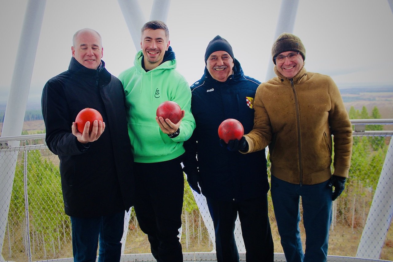 Dem Geschäftsführer der Service Gesellschaft des Nordhäuser Landratsamtes, Gunnar Reuter, blieb es vorbehalten, die Kollegen aus Presse, Funk und Fernsehen in der Scheune am Hexenbesen zu begrüßen. Der Sportkoordinator des Kreises, Werner Hütcher, übernahm von ihm den Staffelstab bzw. das Mikrofon und stellte den großen Stargast des Tages vor, bei dem es sich um niemand Geringeren als einen Doppelweltmeister und dreifachen Europameister im Kugelstoßen handelte, der vor fast 15 Jahren schon das Nordhäuser Indoor für sich entscheiden konnte. David Storl, der sympathische Sportsmann aus Rochlitz musste nicht lange gebeten werden, den heutigen Spaß mitzumachen: die Kugel von der Aussichtsplattform des Hexenbesen zu stoßen und so auf Rekordjagd zu gehen.