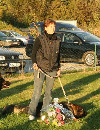 12 Hunde mit ihren Herrchen stellten sich den strengen Blicken von Leistungsrichter Heinrich-Felix Spielberg aus Worbis. Darunter auch Maximilan Krause, der mit 10 Jahren jüngster Teilnehmer war. Den 1. Platz belegte Margit Barnstein (Topfstätt, siehe Foto) mit Hasty Gymor mit 96 von 100 möglichen Punkten. Diese beiden werden Thüringen auf der Deutschen Meisterschaft in Rochlitz (Sachsen) vertreten. Den zweiten Platz errag mit 95 Punkten Rainer Schienbein (Artern) mit Ester vom schönen Kyffhäuser. Auf Rang drei kam Peggy Wollmann (Ottendorf) mit Gini von der Sperlingsbucht mit 94 Punkten.