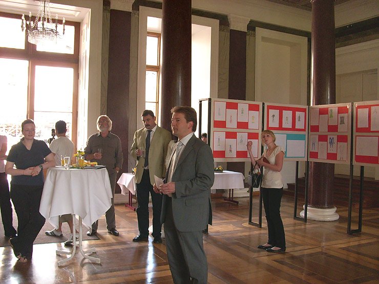 Bürgermeister Joachim Kreyer (CDU) und seine 1. Beigeordnete Cornelia Kraffzick (SPD) ließen es sich nicht nehmen, persönlich zur Ausstellungseröffnung zu kommen. Kreyer zeigte sich begeistert von den Arbeiten der Jugendlichen und sagte: Kunst entwickelt Persönlichkeiten weiter." Kreyer habe bewusst die Form der Vernissage befürwortet, um diese Leistung zu würdigen. Denn viel Zeit hatten die Jugendlichen nicht. Nur fünf Unterrichtsstunden. Aber auch die Theaterleitung hatte sich gut eingebracht.