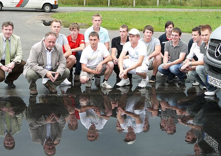 Besprochen wurde in Übungen mit echten Kleinbussen auch die richtige Blickführung des Fahrers - spätestens beim Bremsen und Ausweichen vor einem plötzlich auftretenden Hindernis war manchem Zivi die Notwendigkeit bewusst geworden. Zumal sie erfuhren, daß technische Hilfen wie ABS und ESP auch Grenzen haben. Die Experten ließen auch Aspekte wie Ermüdung, Stress und Informationsverarbeitung nicht aus und ermunterten die Zivis, sich mit ihrem