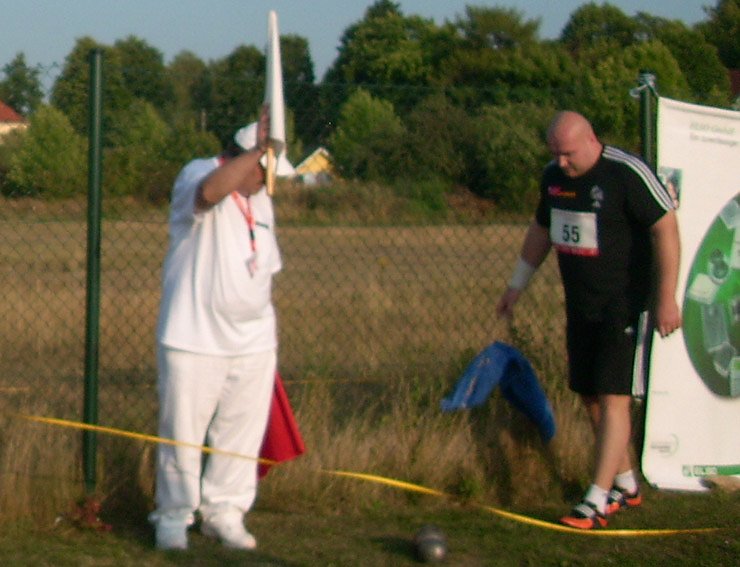 Und auch Peter Sack aus Leipzig ließ sich nicht lumpen. Mit seinem Stadionrekord 20,45 m löschte er den alten Rekord von Ralf Bartels aus dem Jahre 2006 (20,43 m) knapp aus.
