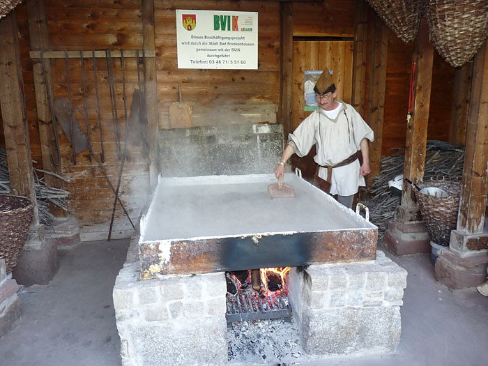 Autor: khhIm Kurpark von Bad Frankenhausen sind ab sofort wieder die Salzsieder am Werke. Im historischen Ambiente an einer noch mit Holzscheiten beheizten Pfanne kann der Besucher erfahren, wie früher dieses wertvolle Gewürz gewonnen wurde.