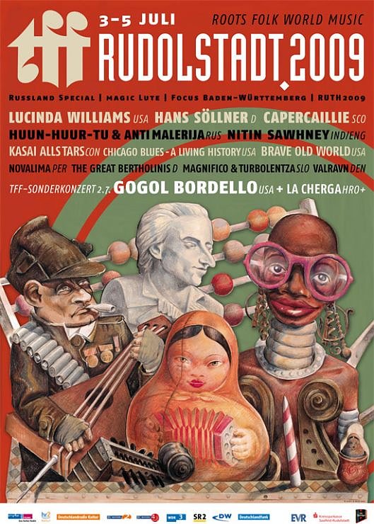 Das Schwerpunktland 2009 ist Russland, aus dem Folkmusik unterschiedlichster Prägung von St. Petersburg bis zum Ural zu hören und sehen sein werden. Die Laute in all ihren Spielarten ist das magische Instrument des 19. tff und auch die Weltmusikpreise RUTH werden auch wieder verliehen. Unter anderem trifft es dabei den Protestbarden Hans Söllner, dessen Rebellentum den Freistaat Bayern und seine Gerichtsbarkeit seit Jahrzehnten in Atem hält. Der regionale Fokus liegt dieses Jahr auf der vielfältigen Folkszene Baden-Württembergs.