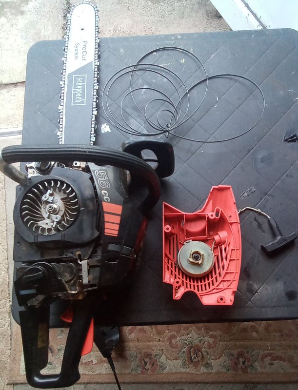 Ich biete hiermit eine Motor Kettensäge mit 56 ccm und ca 4 PS. Sehr leistungsstark. Aus Nachlass. Wenig genutzt von älterem Herrn. Problem: die Rückzugfeder für das Anlassseil ist herausgesprungen, kann man wieder einfädeln... Ich brauche sie nicht. Deshalb gebe ich sie gerne an Fachleute/ Bastler ab. VB 80 Euro.