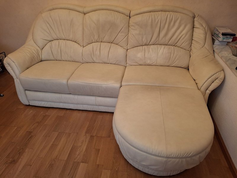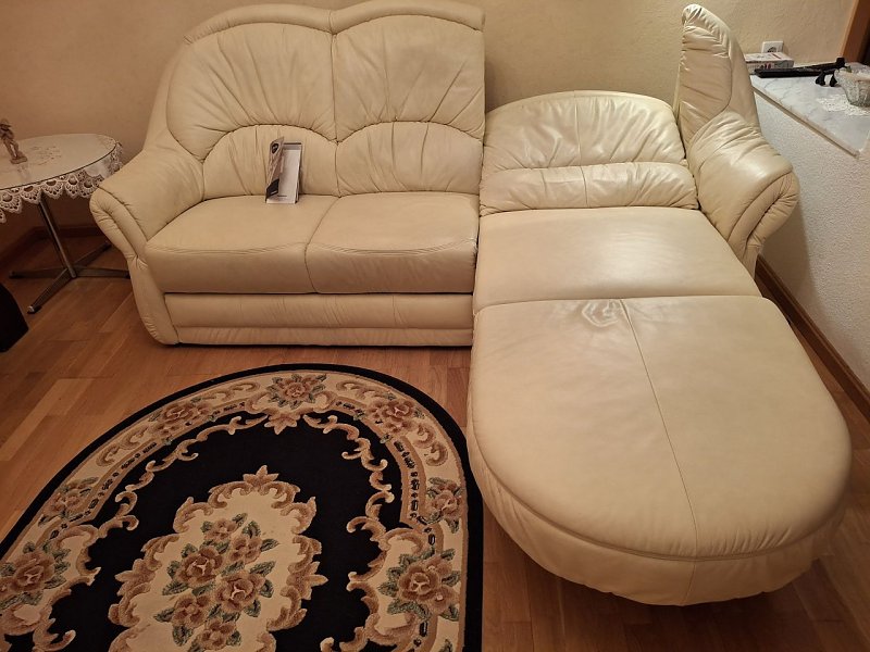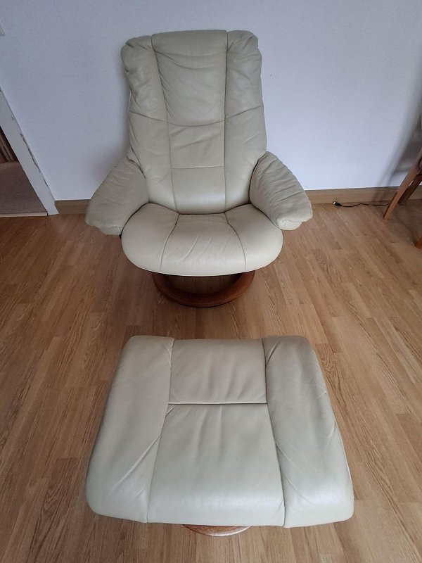 Biete: Ledersofa u.Relaxsessel mit Hocker