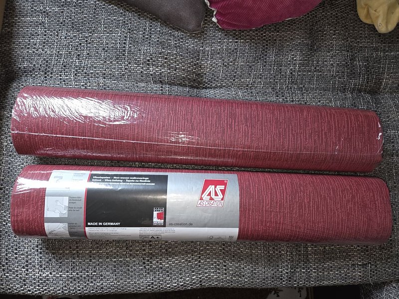 2 Rollen Tapete  (Foto: ) 2 nagelneue Rollen Tapete ,in bordeauxrot.